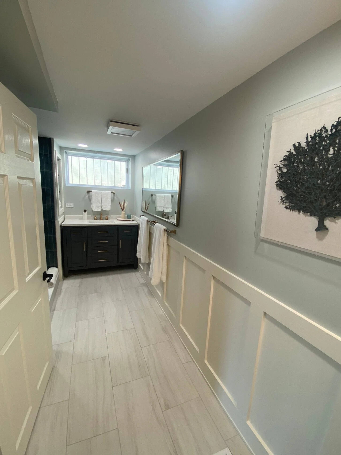 My client’s husband and sons love their updated space for getting ready! Their visiting parents find the larger spa shower much easier to use — they feel like they’re at a fancy hotel!