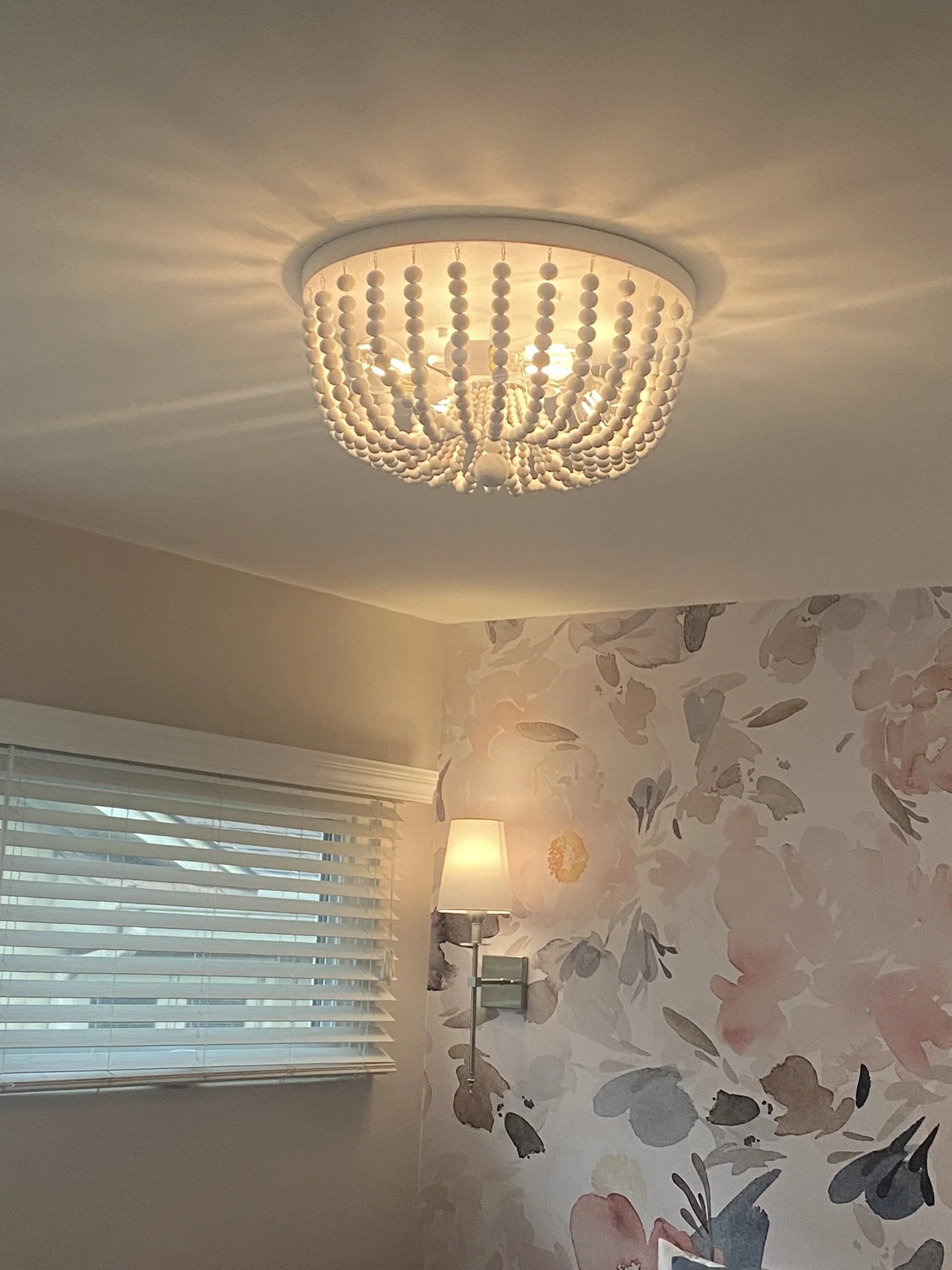 Chose a fun and feminine ceiling light to brighten the room